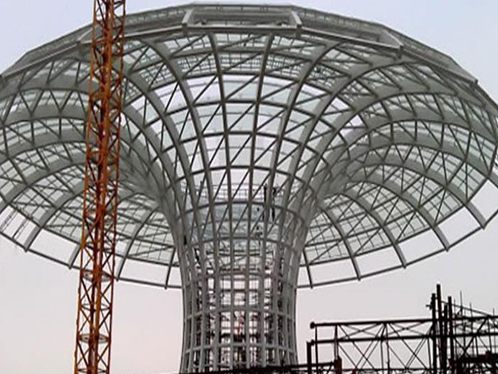 二、球形网架结构因其结构新颖,受力合理,自重轻、用钢量低等优点。如大型体育场馆球形五指山螺栓球网架、公共场馆球形网架、电厂五指山螺栓球网架、水泥工业球形网架、仓储物流球形网架、五指山干煤棚工业球形网架、五指山收费站五指山加油站球形网架、展览中心、影剧院、商场、航站楼、候车厅、工厂五指山车间、仓库、电视塔等球形螺栓球节点网架。国内球形网架结构主要分为:五指山焊接球节点网架及螺栓球节点网架两种。螺栓球节点网架其构件工厂内加工量较大,现场安装便捷,适用于现场工期紧,五指山施工条件、用电量受制约,网架形状复杂、五指山杆件定位困难的异形结构。螺栓球节点球形网架系统基本由五指山杆件、螺栓球、支撑支座等组成。按照节点形式可分为交叉五指山桁架体系、四角锥体系、三角锥体系等。支撑方式多为固定支座支撑。对于大面积、大跨度及有特殊受力或伸缩要求的网架结构可采用橡胶支座、滑移支座、球铰支座等支撑形式,以满足结构自身的受力稳定、均衡,便于内力释放等设计要求。